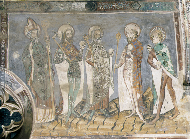 The frescoes painted before 1405 in the sanctuary of the Church in Mălâncrav (Germ. Malmkrog, Hung. Almakerék), a Saxon village belonging to the estate of the Apafi family, represent one of the most well-known mural ensembles of medieval Transylvania. The collective representation of the three holy kings of Hungary (St. Stephen, St. Emeric, and St. Ladislas), an extremely popular iconography in medieval Hungary, is enriched at Mălâncrav with another holy king and a holy bishop, making the scene in Mălâncrav unique. Whereas the identification of the fourth holy king with St. Sigismund of Burgundy, King Sigismund of Luxemburg’s personal patron saint, seems to be accepted by recent scholarship, the holy bishop’s identity is still a question. Focusing on hagiographic, liturgical and historical texts, and analyzing a series of images of saints, the present paper proposes a new identity for the holy bishop and places the representation against the background of the cults of saints which were popular in medieval Hungary and enjoyed the special status of the kingdom’s patron saints.